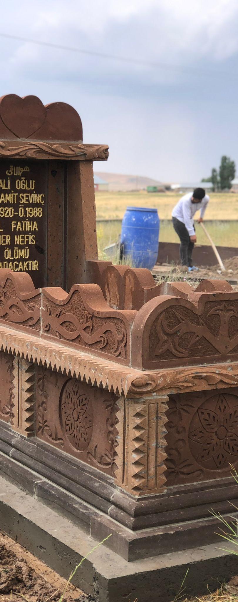 Geleneksel desenlerle işlenen her taş, duygusal bir ifadeye dönüşür. Mezarın üzerindeki yazılar, dualar ve motifler, taşın doğallığı ile bütünleşerek zamana kazınmış birer hatıra haline gelir.
